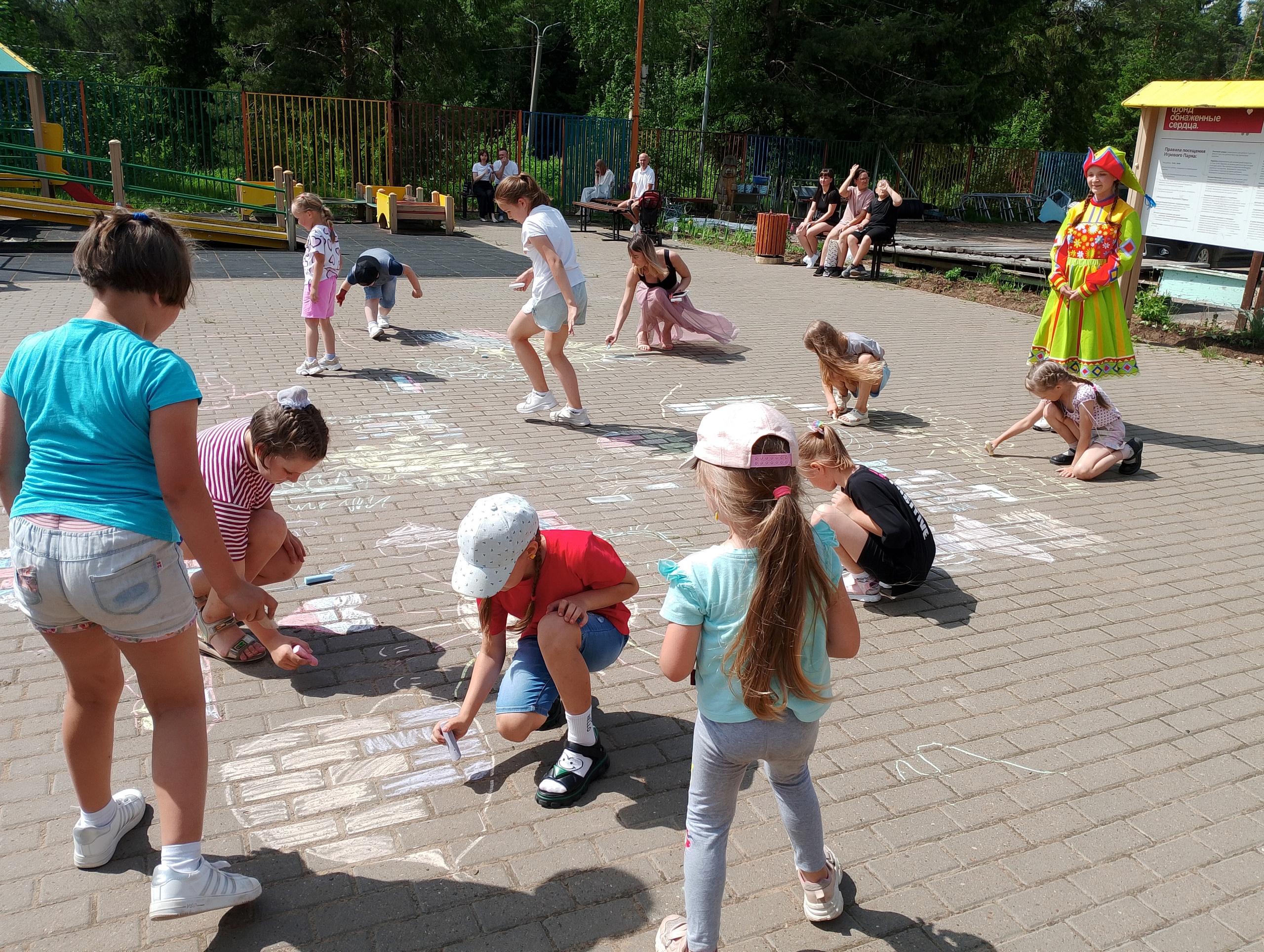 Мы вместе с ребятами нашего отряда весело и дружно провели ещё одну смену под названием "Лето - это маленькая жизнь!". Дети отряда участвовали в проведении массового городского мероприятия, в котором приняли участие как дети лагеря, так и все желающие, отдыхавшие в парке. Учавствовали в мастер-классах, конкурсе рисунков на асфальте "Россия - Родина моя", посвященный Дню России, подвижных и развлекательных играх, среди которых: игра-викторина по правилам дорожного движения, спортивных соревнованиях, играх со скоморохами и многое другое!